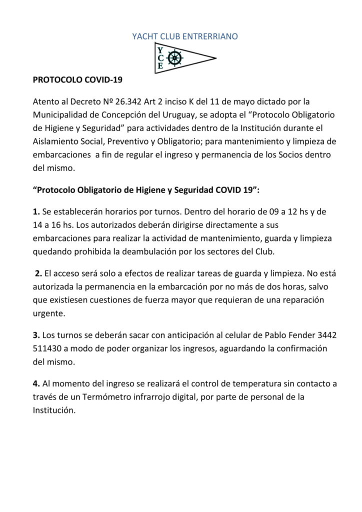 Protocolo COVID-19 de ingreso al Club
