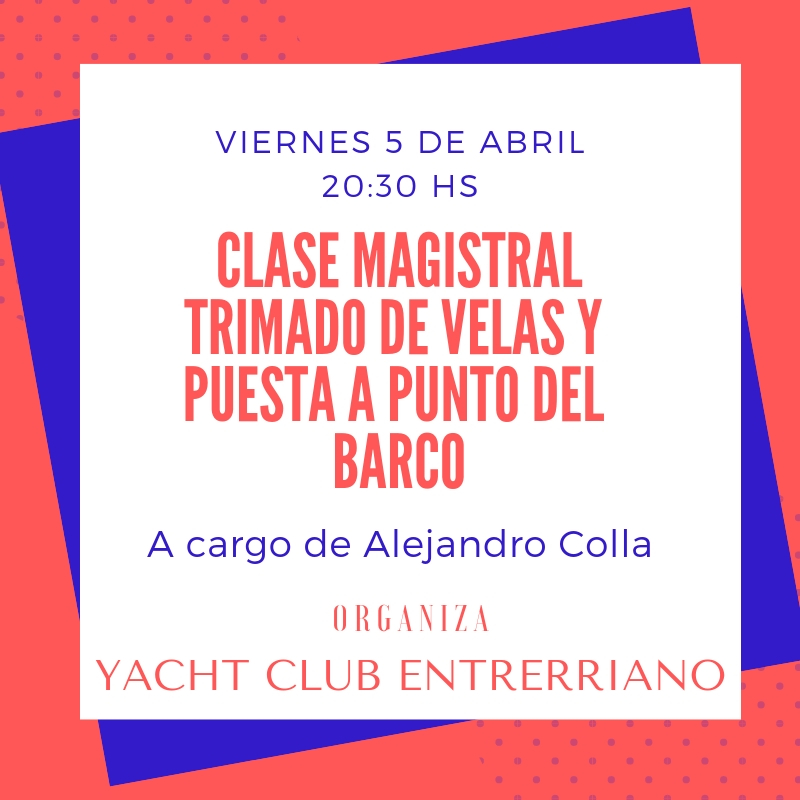 El Viernes 5 de abril nuestra Sede brindara una charla destinada a todos los nautas Socios y no Socios nuestro Club a cargo de Alejandro Colla Sub campeón mundial júnior de Láser 1988. Ganador clasificación general de la regata Buenos Aires Río de Janeiro 1993. Medalla de Bronce Panamericano 1995 en Lightning. Ganador regata Fastnet 1999. […]